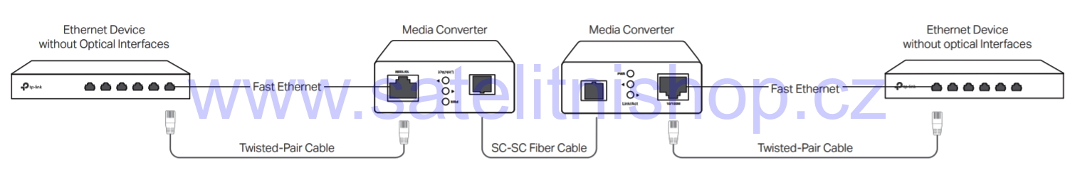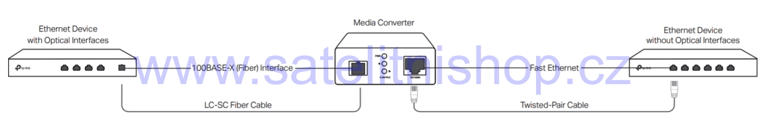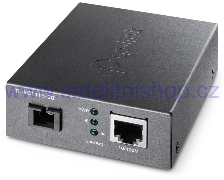 TL-FC111B-20 je opticko metalický WDM konvertor z RJ45 na optický SC konektor. Jeho maximální propustnost je 100Mbps FD, čemuž je přizpůsobený i ethernetový port, který s vaším zařízením může komunikovat 10/100Mbps. Konvertor lze použít až na vzdálenost 20km se single-mode (9/125um) optickým vláknem zakončeným jedním SC konektorem. Vlnová délka je 1310/1550nm (Tx/Rx) a pro správnou funkčnost je potřeba mít na protější straně nejlépe model TL-FC111A-20, který má opačné Tx a Rx než tento model.